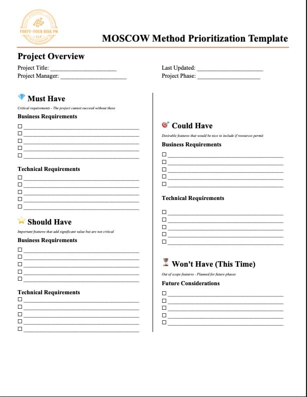 Sign up below to get a plug and play MoSCoW Method Template you can use for your current or next project!